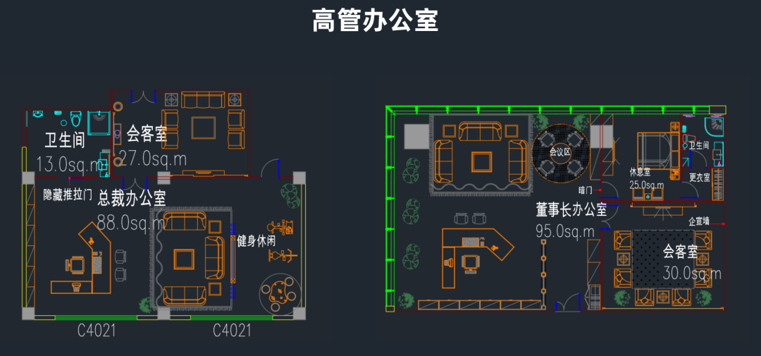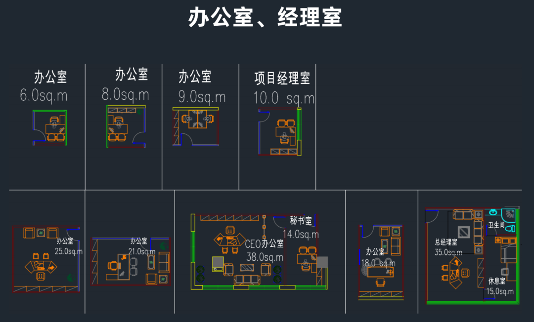 功能分区明确:通常分为前台接待区、办公区、会议室、贵宾接待室、茶水间等功能区域,各区域布局合理,兼顾效率与隐私需求。