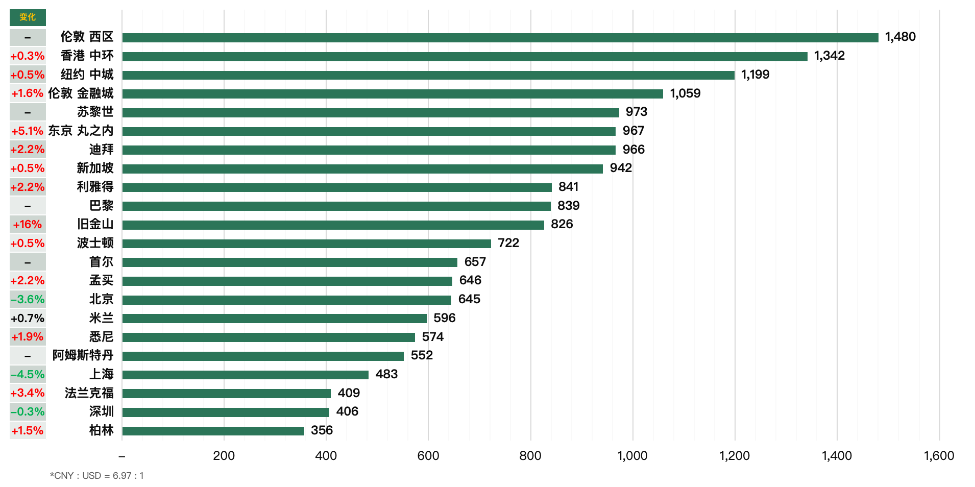 全球顶级楼宇成交租金上升1.2%