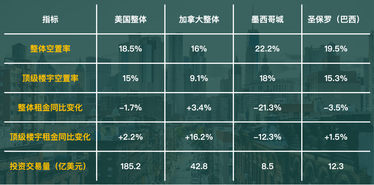 纽约:市中心空置率20.6%(环比持平),净吸纳量-6.2千平方米(金融企业收缩导致);但曼哈顿中城顶级楼宇受黑石等机构追捧,如1345 AOA大厦洽谈收购案,预计2026年租金触底回升。