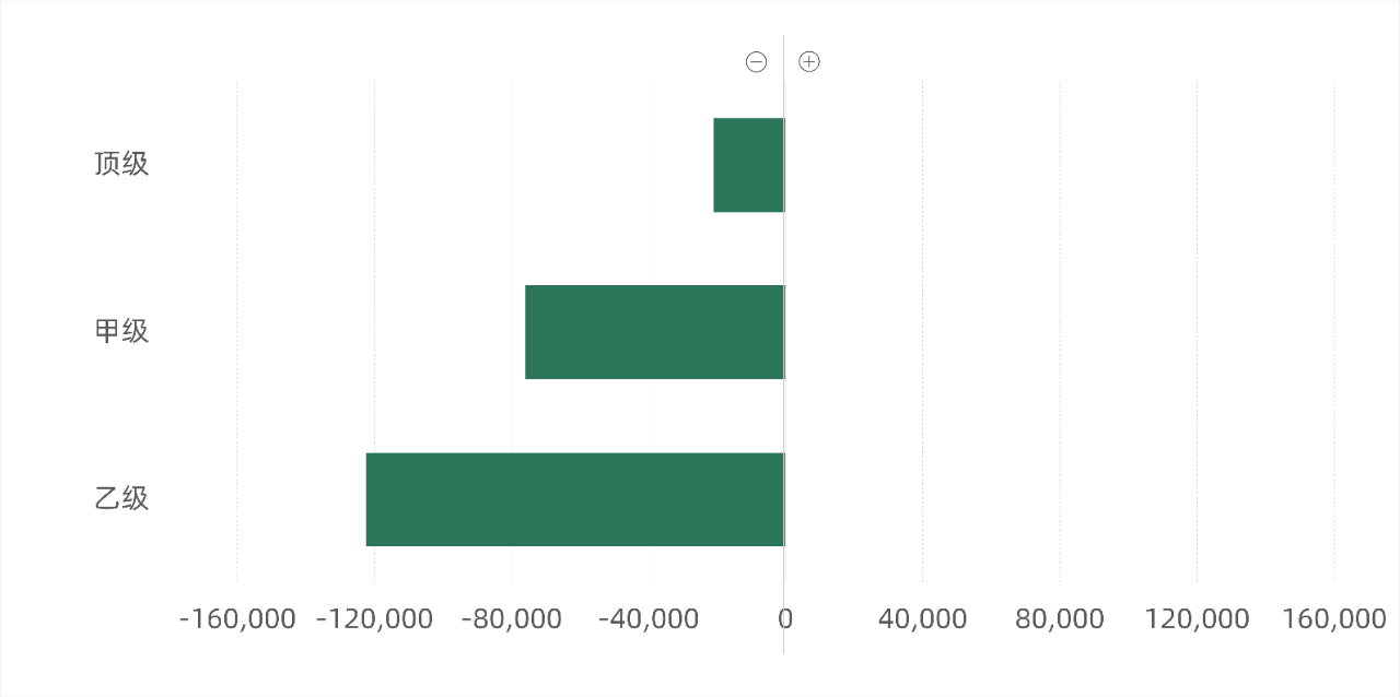 按楼宇等级成交面积(-/+)环比变化